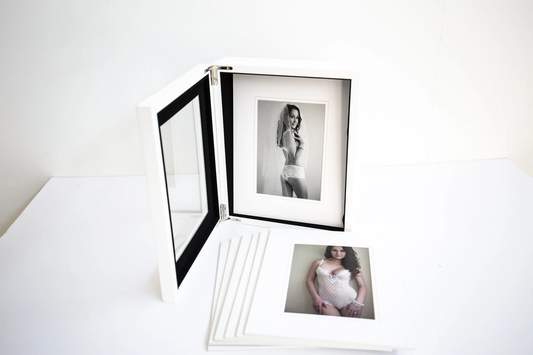 You can also have your boudoir photographs displayed in foldable frames to be displayed on your partner’s bedside table. This compact piece can serve as a reminder to your significant other that having you is the best decision they make and that you are always present for them every day.